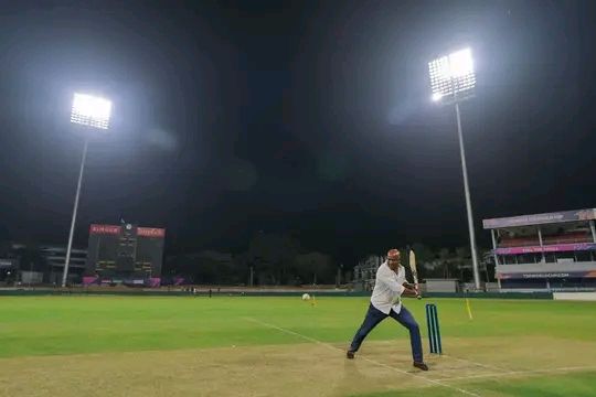 විදුලි ආලෝකය යටතේ ශ්රී ලංකා ක්රිකට් ප්රධාන පුහුණුකරු සනත් ජයසූරිය පළමුව පන්දුවට මුහුණ දෙද්දී ශ්රී ලංකා T20 නායක දසුන් ශානක පන්දු යැවීමේ නිරත වුණා.