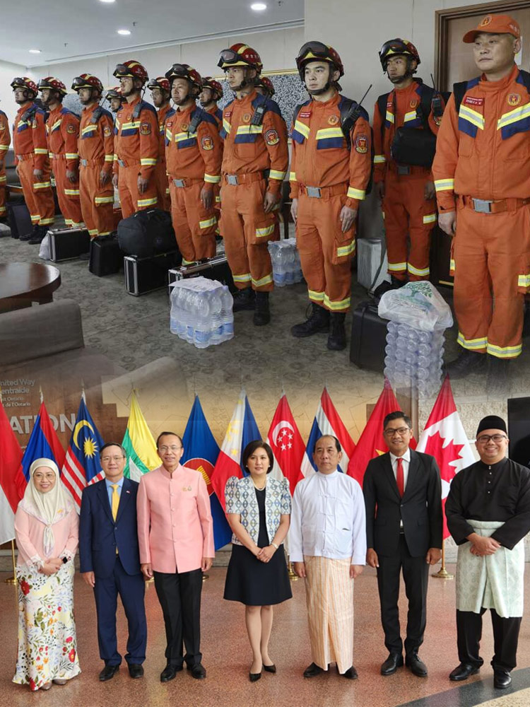 මේ අතර අයහපත් කාලගුණයෙන් අවතැන්ව සිටින ජනතාවට සහන සැලසීමේ අරමුණින්, මියන්මාර රජයේ දූත පිරිසක් සමග ආධාර රැගත් එරට ගුවන් හමුදාවේ (Y-8) ගුවන් යානයක් ඊයේ රාත්රියේ කටුනායක ගුවන් හමුදා කඳවුර වෙත පැමිණියා
