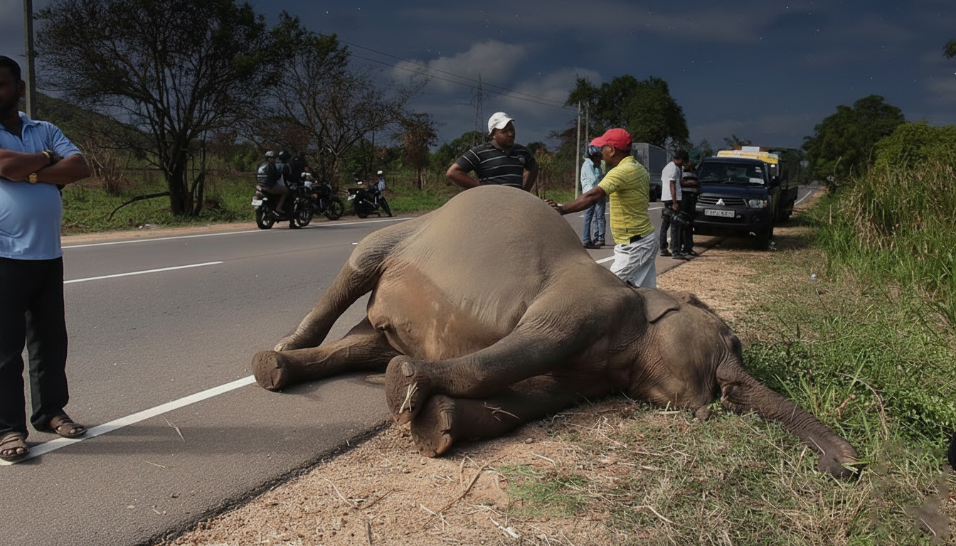 හබරණ ත්‍රිකුණාමලය ප්‍රධාන මාර්ගයේ දී වෑන් රථයක ගැටී වන අලියෙකු මරුට