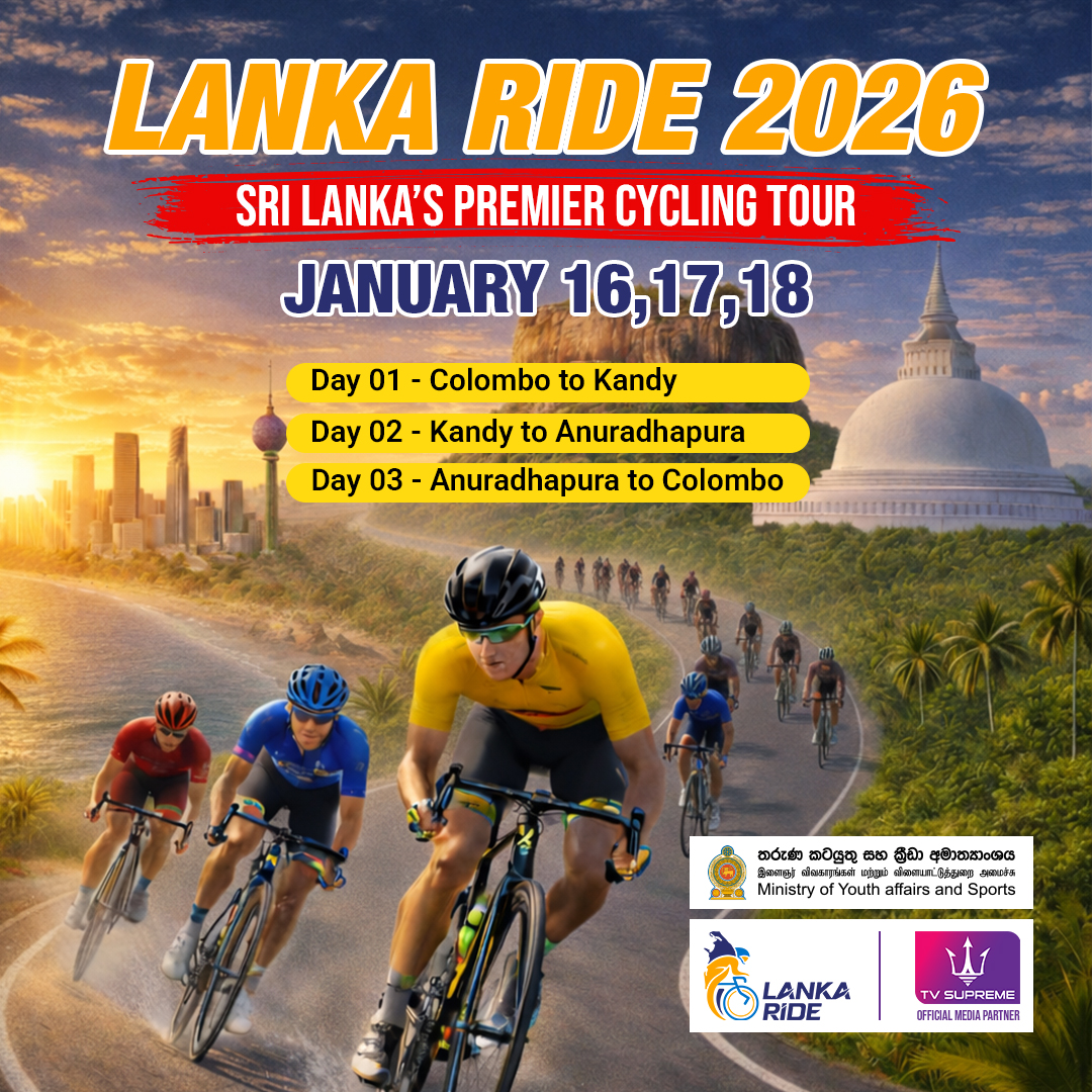 ක්රීඩා සංවර්ධන දෙපාර්තුමේන්තුවේ මෙහෙයවීම මත ක්රීඩා අමාත්යංශයේ සහ ලේක්හවුස් ආයතනයේ සංවිධාන සහය යටතේ පැවැත්වූ Lanka Ride 2026 පාපැදි තරගාවලිය ඊයේ කොළඹ නිදහස් චතුරස්ර පරිශ්රයේදී නිමාව දුටුවා.